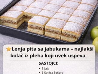 ⭐ LENJA PITA SA JABUKAMA – NAJLAGANJI KOLAČ IZ PLEHA Sastojci: • 3 jaja • 5 šoljica šećera • 6 šoljica brašna • 1 prašak […]