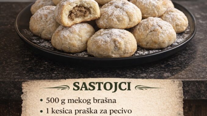 Peci u zagrijanoj rerni na 180°C, oko 20–25 minuta – treba da ostanu svijetle, ne prepečene.
