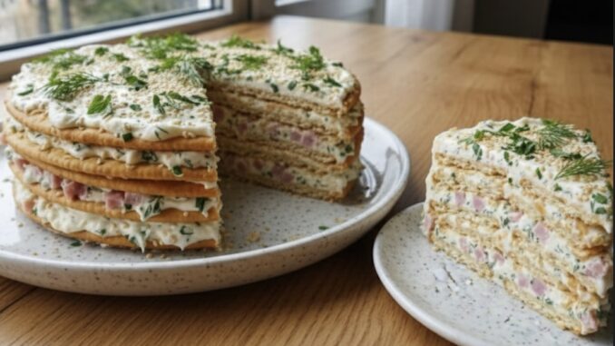 5. Završni sloj premaži smjesom i po želji ukrasi rendanim sirom ili krastavcima.