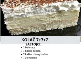 📋 Sastojci Biskvit: • 7 belanaca • 7 kašika šećera • 7 kašika oštrog brašna Fil: • 7 žumanaca • 7 kašika šećera • 1 […]