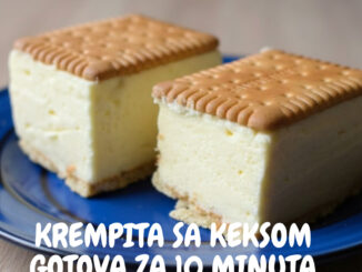 Sastojci: Kora: 500g keksa Fil: 1l mleka 4 kom. jaja 250g margarina 16 kaš. šećera 3 kaš. brašna 3 kaš. griza 2 kaš. gustina 2 […]