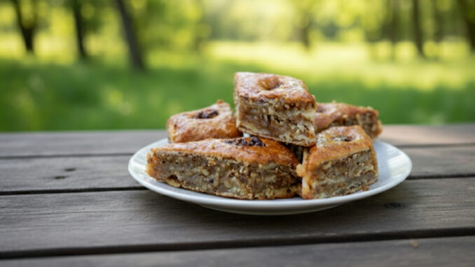 3. Smjesu sipajte u nauljen pleh i pecite u rerni zagrijanoj na 180°C oko 25–30 minuta, dok ne porumeni.