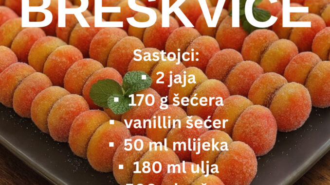 Mnogi od nas s nostalgijom se sjećaju breskvica. Jeste li ih ikada probali napraviti? Ako niste, evo prilike – donosimo vam recept za ove prekrasne prhke i mirisne kolačiće koji će vas vratiti u sretne dane djetinjstva!