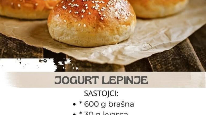 600 g brašna * 30 g kvasca * 13 g soli * 150 g jogurta * 50 ml ulja * 150 ml mleka * 150 ml vode * susam