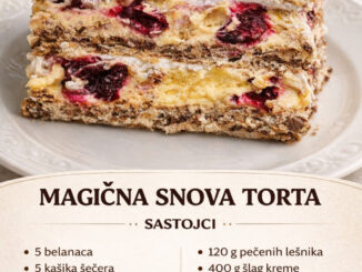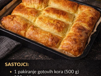 SASTOJCI: Za štrudlu: • 1 pakovanje gotovih kora za štrudlu • 100 ml ulja ili otopljenog maslaca • 2–3 kašike griza (ili prezli) Za vanil […]