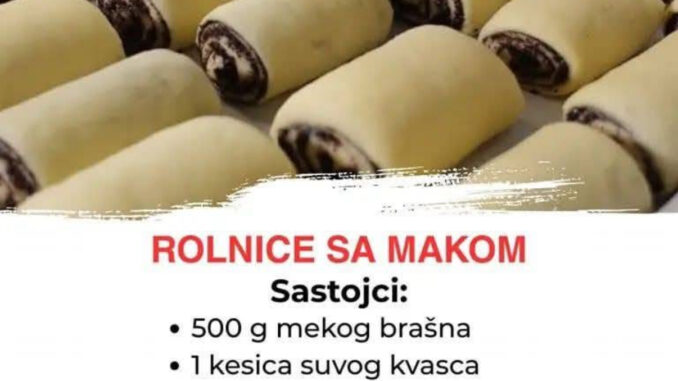 Premažite makom, pa pažljivo uvijte u rolat. Isecite na rolnice širine oko 2-3 cm.