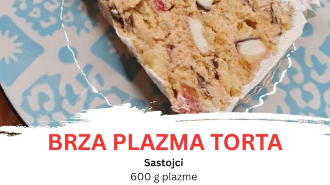 U posebnoj posudi pomešajte plazmu, iseckane jagode, banane i krem bananice.