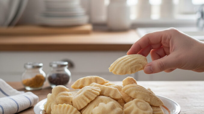 Puniti kalupe, ne do kraja, jer se šape malo dignu prilikom pečenja. Poslije pečenja još vruče uvaljati šape u štaub šećer.