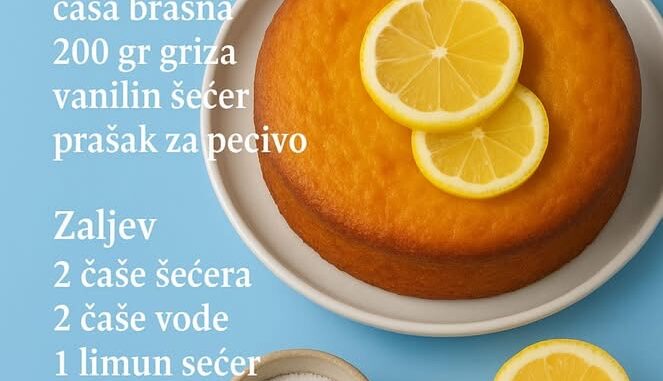 Sočni kolač od griza (jednostavno – “mera na čašu” sa šoljom od 200 ml)