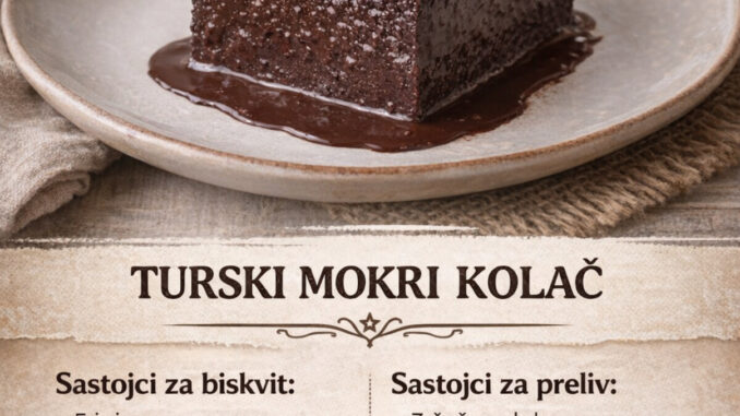 TURSKI MOKRI KOLAČ NATOPLJEN ČOKOLADOM: Toliko je sočan da se topi u ustima, uspeva svakom i pravi se neverovatno brzo